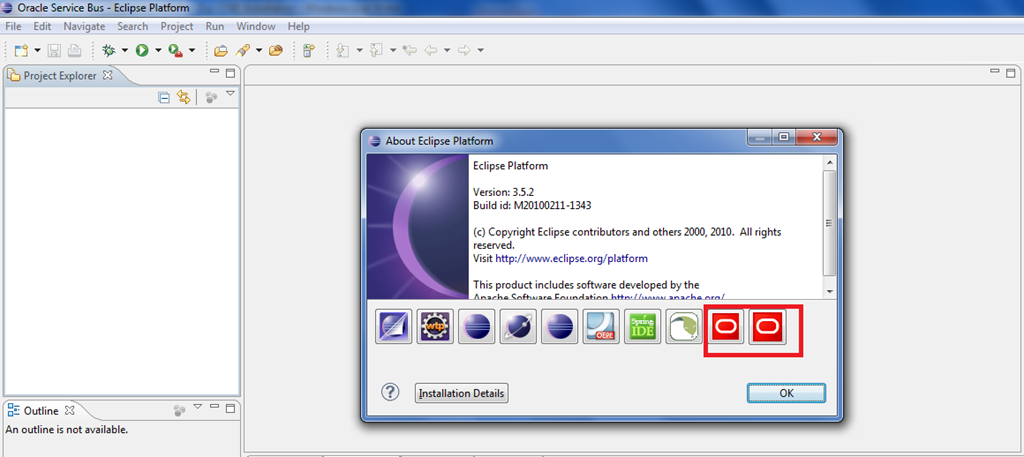 The development platform for OSB is Eclipse. To verify the OSB related plug-ins installation, open Eclipse and select Help –> About Eclipse Platform. The last two icons as shown in the below screenshot indicates that OSB related plug-ins are installed and Eclipse is ready for the OSB services development.