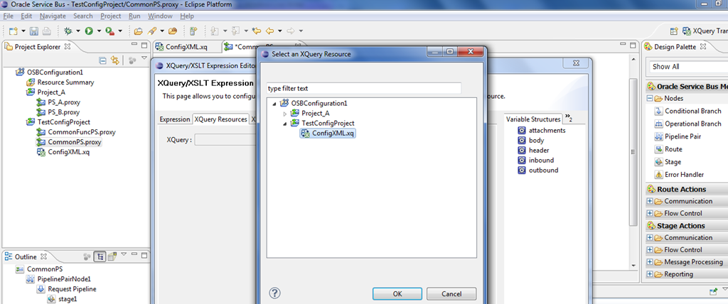 Click on OK button after selecting ConfigXML.xq resource in the popup window and give the assign variable as varConfigPayload.