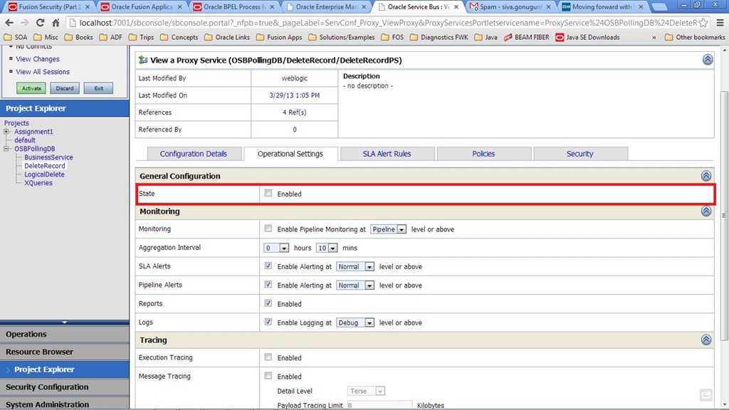 Deploy OSB project and disable the proxy DeleteRecordPS so that only our new proxy service will poll DB table.