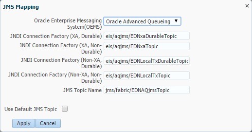 [2014-12-19T21:23:28.685+05:30] [soa_server1] [TRACE] [] [oracle.integration.platform.blocks.event.jms2.EdnBus12c] [tid: [ACTIVE].ExecuteThread: ’16’ for queue: ‘weblogic.kernel.Default (self-tuning)’] [userId: <anonymous>] [ecid: 7bd5dbff-2042-456b-aa50-4c833203de1b-0000149c,0:2] [APP: soa-infra] [J2EE_APP.name: soa-infra] [J2EE_MODULE.name: fabric] [WEBSERVICE.name: RaiseEvent_ep] [WEBSERVICE_PORT.name: execute_pt] [oracle.soa.tracking.FlowId: 9] [oracle.soa.tracking.InstanceId: 49] [oracle.soa.tracking.SCAEntityId: 11] [composite_name: EDNConsistencyCheck] [FlowId: 0000KdZGFD03z0WjLxyGOA1K^6wo00000N] [SRC_CLASS: oracle.integration.platform.blocks.event.jms2.EdnBus12c] [SRC_METHOD: publish] EDN outbound: JMS Config: oracle.soa.management.config.edn.EDNJmsConfig@d94f545 [remote=false, jmsType=WLJMS, durable=true, xa=true, connectionName=eis/wls/EDNxaDurableTopic, topicName=jms/fabric/EDNTopic]