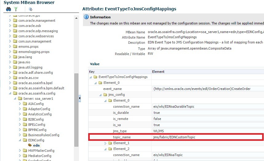 [2014-12-19T21:23:28.806+05:30] [soa_server1] [WARNING] [DMS-50763] [oracle.dms.instrument] [tid: DaemonWorkThread: ’14’ of WorkManager: ‘SOA_EDN_WM’] [userId: weblogic] [ecid: f0d1ad91-cab2-484f-94e2-834724cc0eaa-0001061d,0] [APP: soa-infra] Attempt to create pre-existing noun /soainfra/apps/default/EDNConsistencyCheck!1.0/BUSINESSEVENTNAMESPACESs/http^/xmlns.oracle.com/events/edl/OrderCreation/BUSINESSEVENTs/CreateOrder, of type soainfra_business-event-publish, with a conflicting type soainfra_business-event-process.