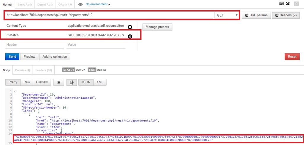 In ADF, often we see error saying ‘JBO-25014: Another user has changed the row with primary key oracle.jbo.Key’. The framework throws this error to make sure that none of the user changes are accidentally overwritten by another user and generally occurs when a user trying to modify record that has been just modified and committed by another user. In this post, we will see how to take care of this scenario using ADF BC REST services in context of HTTP PATCH.