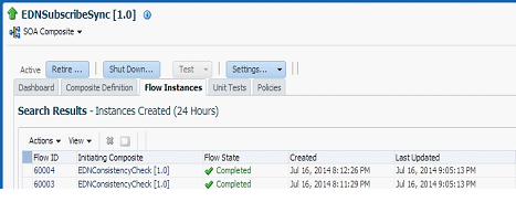 - Asynchronous BPEL process (SubscribeToEventBPELProcess process in composite EDNConsistencyCheck).