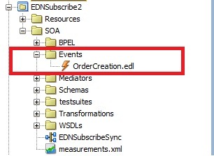 The initial observation is, now the new SOA project will have the folders for different artifacts and the folder Events is for edl files.
