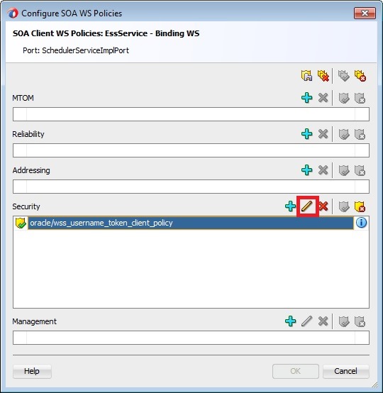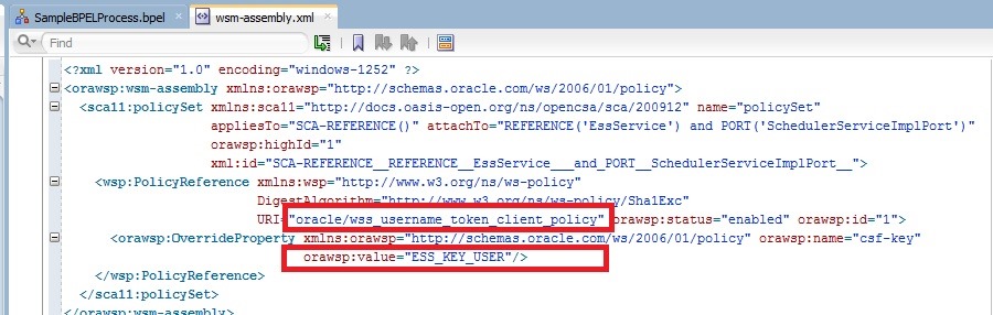 Deploy your SOA project using above configuration plan and Test. Now we will observe the following error as ESS Webservices can’t be run with anonymous user credentials. To get away with that, modify the ESS webservice by attaching OWSM policy as detailed by Lucas in his blog.