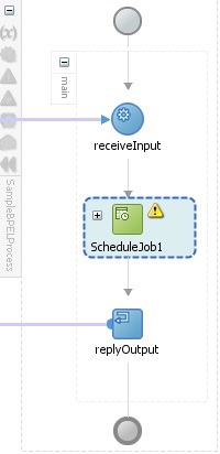 Create a Sync BPEL process and drag Schedule Job activity into BPEL from Components –> Oracle Extensions as shown below.