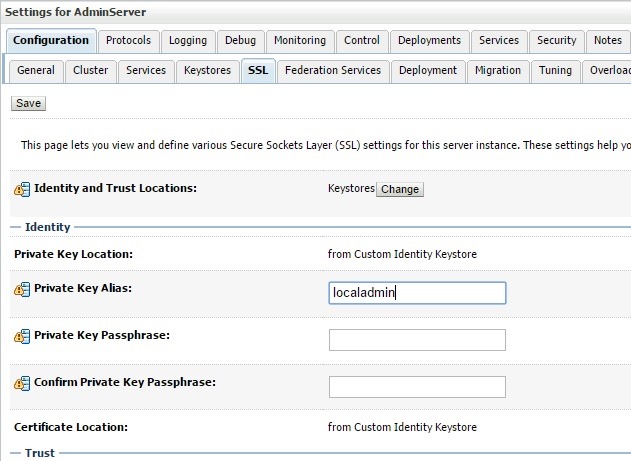 - Verify you are able to access admin console using http://localhost:7001/console and observe that AdminServer is up and running. The password for admin console will be the value given for DC_ADMIN_PWD in setenv.sh.