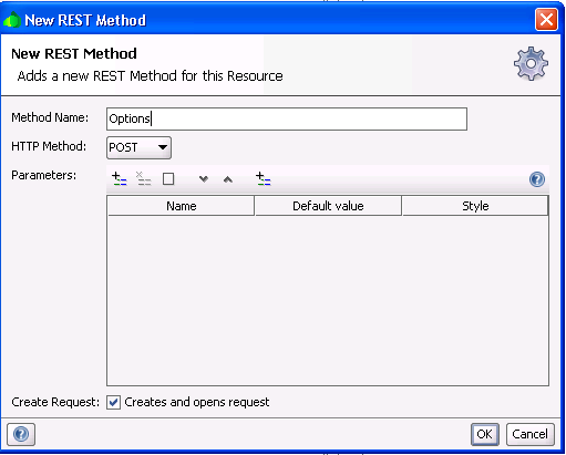 In the next dialog window, Enter any value for method name and select the HTTP method as your Proxy Service supports. Since my OSB proxy service supports only POST I am selecting the method as POST as shown below and click on OK.